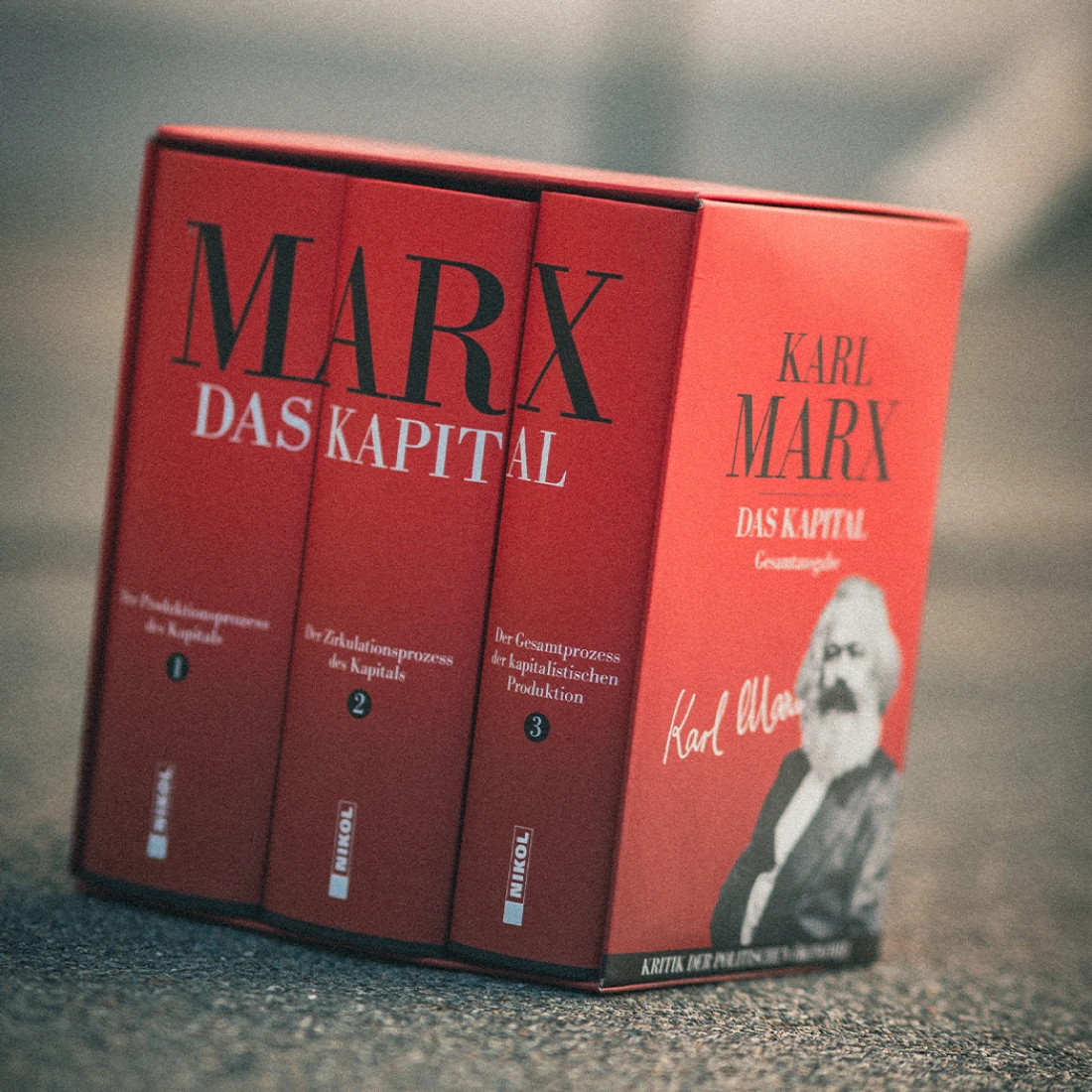 Alle 3 Bände von Karl Marx Standardwerk zusammen in einer Box.