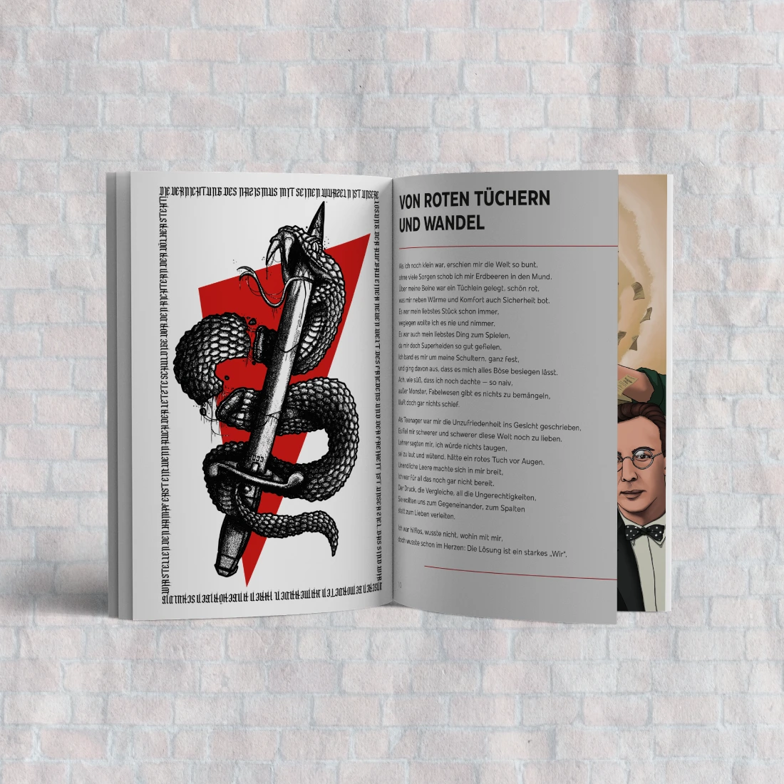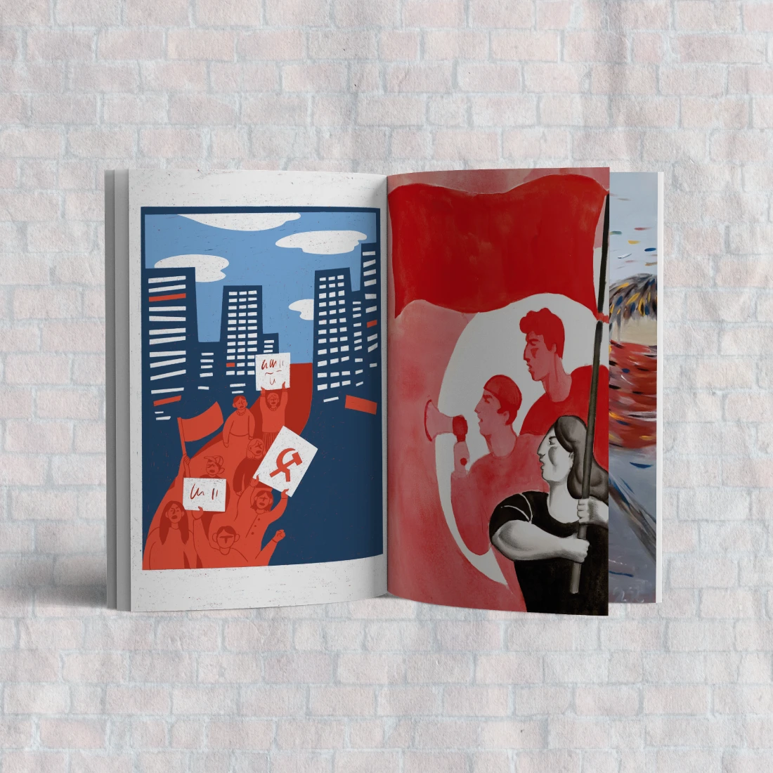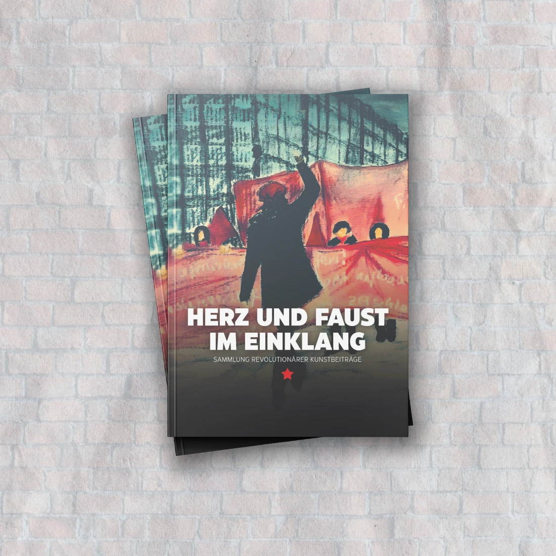 schon immer war Kunst und Kultur ein elementarer Baustein der Gesellschaft. Sie bewegt Menschen und bringt sie zusammen, löst Freude wie Trauer aus. In ihr spiegeln sich die Träume, Bedürfnisse und Ängste der Massen wieder. Dabei hat sie in der Geschichte stets eine wandelbare Rolle gespielt. Mal war sie Mittel, um Mitglieder der herrschenden Klasse zu verherrlichen, reaktionäre Rollenbilder festigen oder faschistische Demagogie verbreiten, mal als bloße Ruhigstellung der Massen. Revolutionär:innen hingegen bedienten sich der Kunst, um Klassenbewusstsein zu vermitteln und Menschen hinter die Idee für den Sozialismus zu vereinen. Denn sie hat das Potential, die Wut, die Trauer, aber auch den Willen für eine bessere Welt der unterdrückten Massen aufzufangen und sie in revolutionäre Energie umzuwandeln. Unsere Aufgabe als Kommunist:innen heute ist es, dieses revolutionäre Potential der Kunst wieder für uns zu nutzen. Ob Lieder, Theaterstücke, Romane, Gedichte, Gemälde, Comics oder Animationsfifi lme: Wir blicken auf eine lange und reiche Tradition an sozialistischer und revolutionärer Kunst zurück. In Zeiten, in denen die sozialistische Bewegung einen Aufschwung erlebte und hunderttausende, ja Millionen von Menschen umfasste, konnte diese Kunst ganz andere Form annehmen als heute, wo wir uns in einer Aufbauphase befifi nden und zahlenmäßig noch kleiner sind. Und dennoch versuchen wir an diese Tradition anzuknüpfen, und unseren Beitrag zum Aufbau einer sozialistischen Kunst und Kulturlandschaft zu leisten. Mit unserem ersten Sammelband „Auf dem Gipfel die neue Welt“, der Gedichte, Kurzgeschichten und Illustrationen umfasst sind wir einen Schritt in diese Richtung gegangen. Dieser zweite Band stellt den nächsten dar. Unter dem Titel „Herz und Faust im Einklang“ haben wir dieses Mal neben Gedichten einen Schwerpunkt auf Illustrationen von unterschiedlichen revolutionären Kunst- und Kulturschaffenden gelegt. Wir wünschen viel Spaß beim Lesen und Betrachten der Kunstbeiträge.