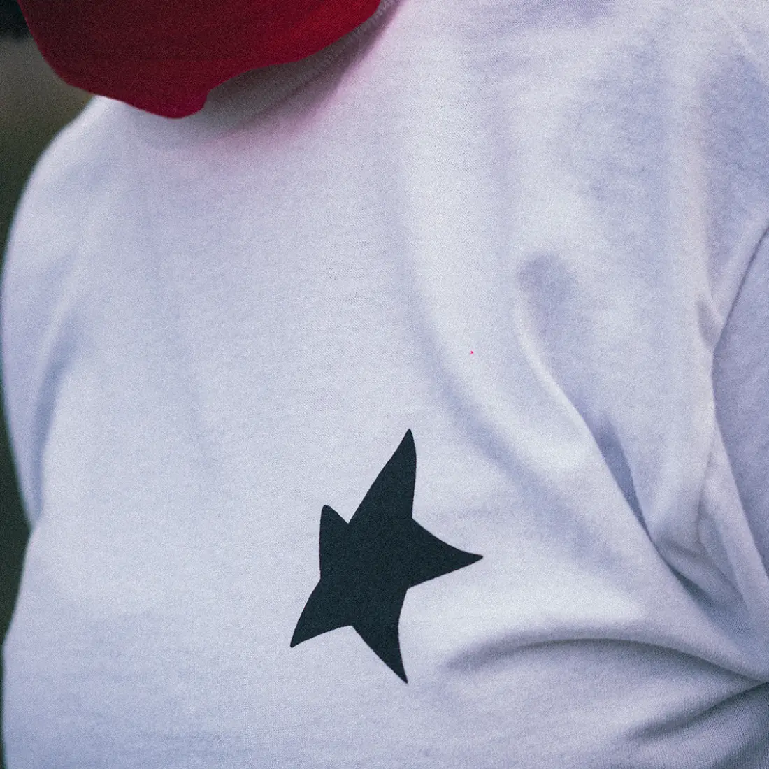Vorderseite mit kleinem Print auf der Brust und Rückseite mit großem Print auf dem Rücken.